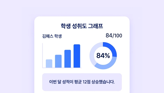 기존의 제한적인 학습 관리 시스템으로는 불가능했던 깊이 있는 학생별 학습 통찰을 제공합니다. 학원은 이 데이터를 통해 학생의 숨겨진 학습 메커니즘을 이해하고, 개인에게 최적화된 맞춤 전략을 수립하는 과학적 근거를 갖게 됩니다.